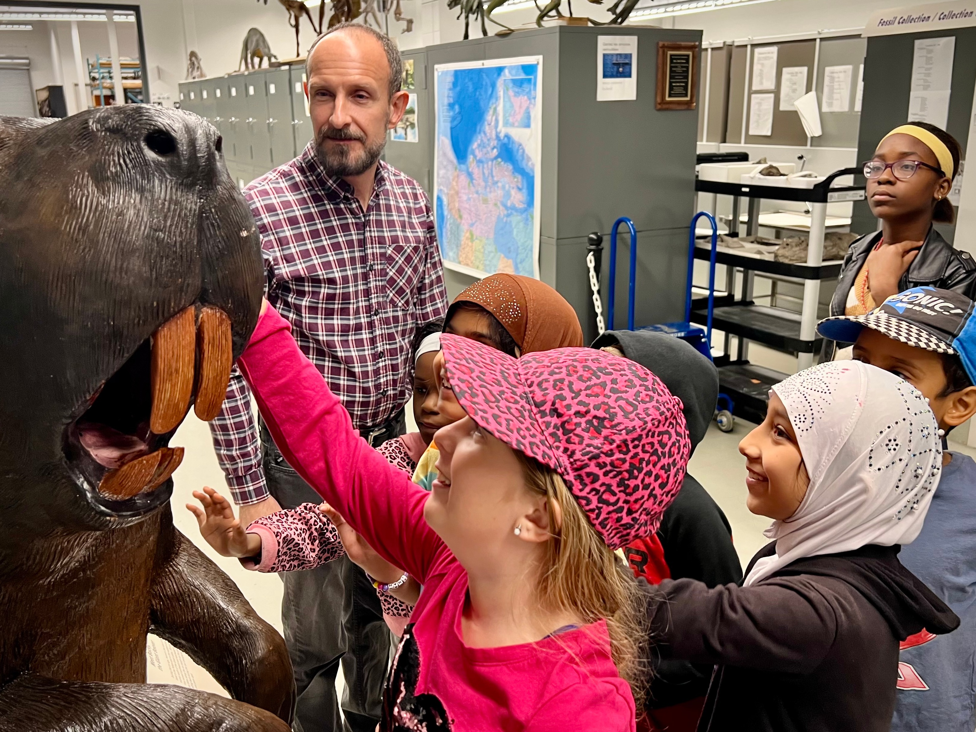 Each day includes science-rich learning experiences through guided wanderings in museum galleries featuring dinosaurs, mammals, birds, and oceans. One afternoon each week, children enjoy hands-on programming led by Museum educators, offering a deeper and more personal connection to scientific ideas and museum collections. Chaque journée propose des expériences d’apprentissage scientifique enrichissantes grâce à des visites guidées dans les galeries du musée présentant les dinosaures, les mammifères, les oiseaux et les océans. Un après-midi par semaine, les enfants participent à des ateliers pratiques animés par les éducateurs du musée, ce qui leur permet d’établir un lien plus profond et personnel avec les concepts scientifiques et les collections.