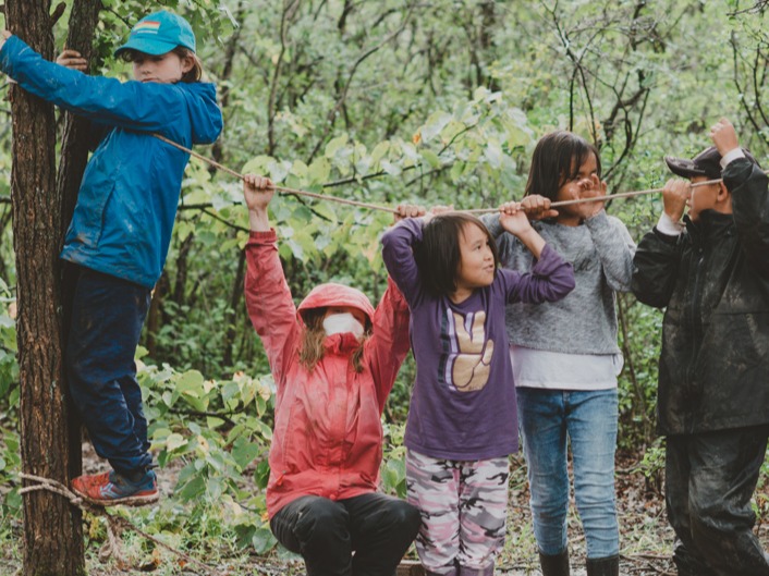 The Forest Friends program includes a Fox group (4-10 years) and a Chickadee group (4-6 years), to offer a wider or narrower age range. Mixed-age groupings offer children scaffolded learning in empathy and social skills.